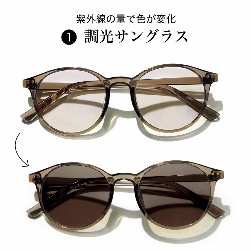 紫外線の量でサングラスの色が変化するので、屋外・室内の移動でも着け外しが不要という優れもの。