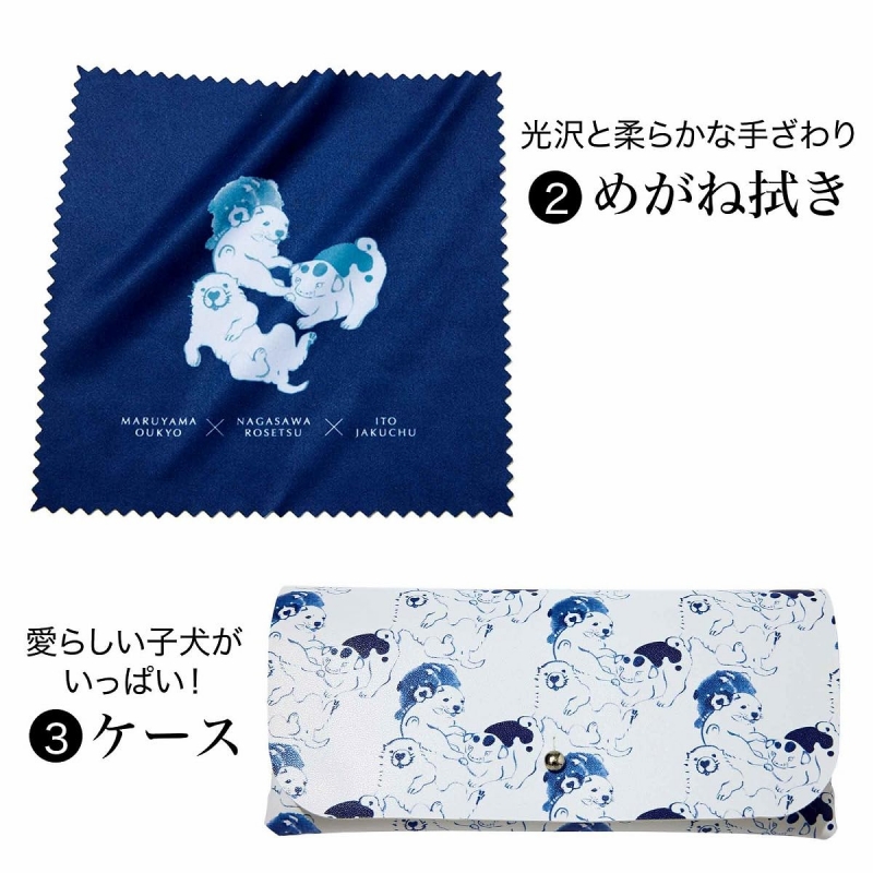 ケース&めがね拭きは、伊藤若冲、円山応挙、長沢芦雪ら、3人の巨匠の子犬たちをコラージュ。