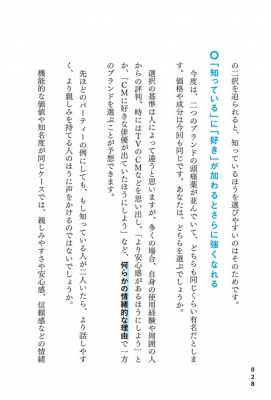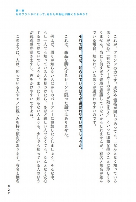 目次 : 第1章 なぜブランドによって、あなたの会社が強くなるのか?/ 第2章 強いブランドの第一歩は「これ」だけ/ 第3章 顧客は「ここだけ」つかめばいい/ 第4章 勝ち方を知っているブランドは「これ」しかやらない/ 第5章 ブランドは、この価値だけを売っている/ 第6章 ブランドの魅せ方、伝え方