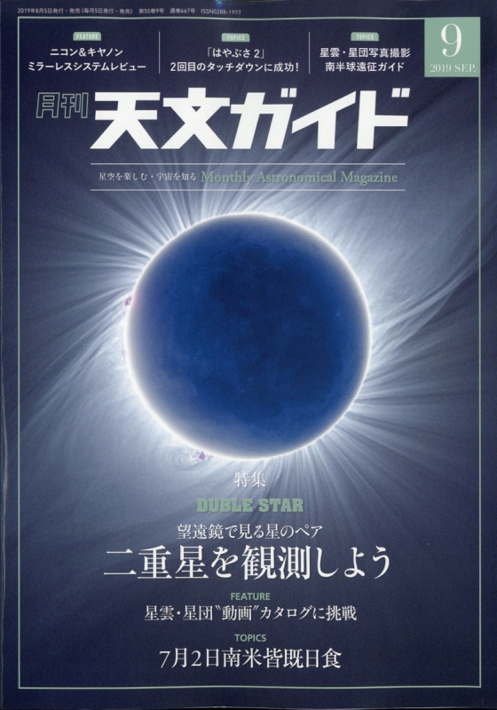 ■特集1:肉眼彗星となるか!?パンスターズ彗星2017T22020年の夏に1等級まで明るくなるとの予報が出た。増光が続けば、2020年夏に肉眼で観測できる明るい彗星となることが期待されている。この彗星の最新の動向と今後の予報を紹介する。■特集2:見に行ける天文台■7月3日・南米皆既日食
