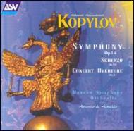 ロシアの作曲家、アレクサンドル・コプィロフの管弦楽曲を集めたCDで、『交響曲』『スケルツォ』『演奏会用序曲』の3曲が収録されています。 いずれも録音はそうは他にないであろうという珍しい物です。 リムスキー=コルサコフとリャードフに教えを受けたコプィロフですが、作風はどれも歌謡的で叙情的な美しさを持った良くも悪くもロシアと言った物で、大きな癖はないのですが、印象は薄く、忘れられてしまったのも分かる気がします。 演奏はアントニオ・デ・アルメイダ指揮、モスクワ交響楽団による物なのですが、これも良くない。 アルメイダ最晩年の1996年の録音という事もあってか精彩に欠ける所があり、楽譜を音にしたという印象です。 オーケストラの技量は悪くありませんが作品がイマイチよく印象に残らなかったのは演奏のせいもあるでしょう。 録音は良好。