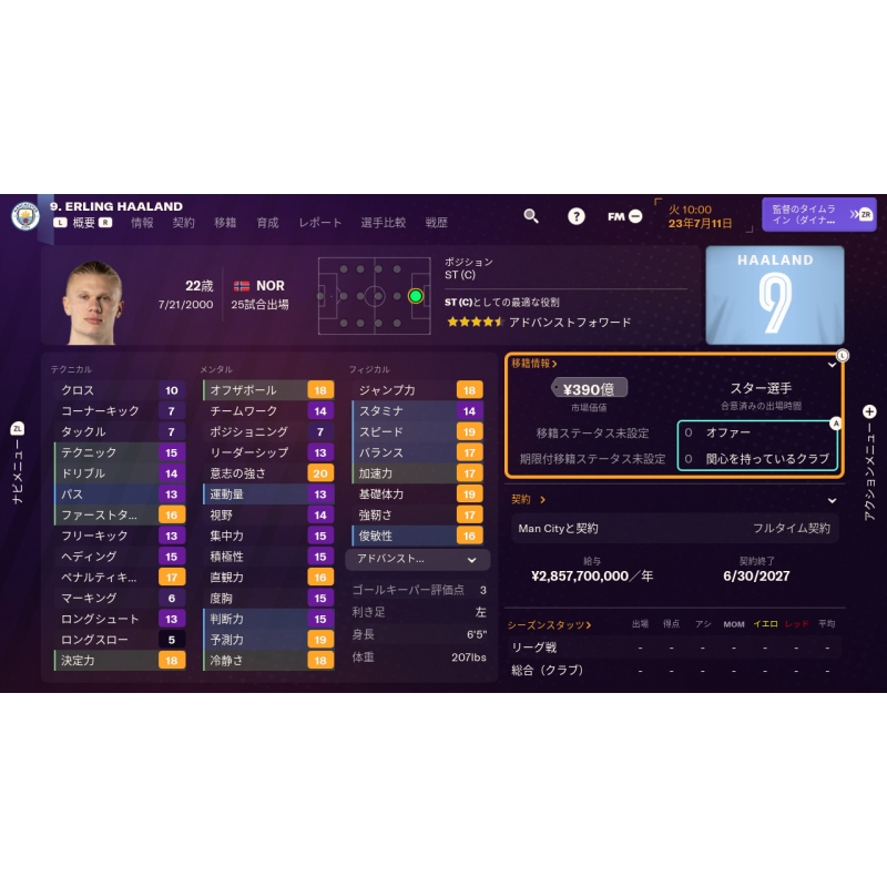 選手データは、ドリブルやパス、オフザボールの動きや、メンタルに至るまで、30以上のパラメーターが設定されています。