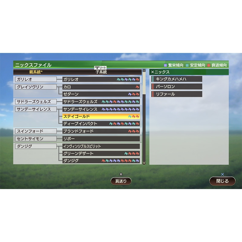 「開始年」によって初年度に入手できる馬やライバル馬が異なるのはもちろん、血統勢力図やニックス状況なども変わります。