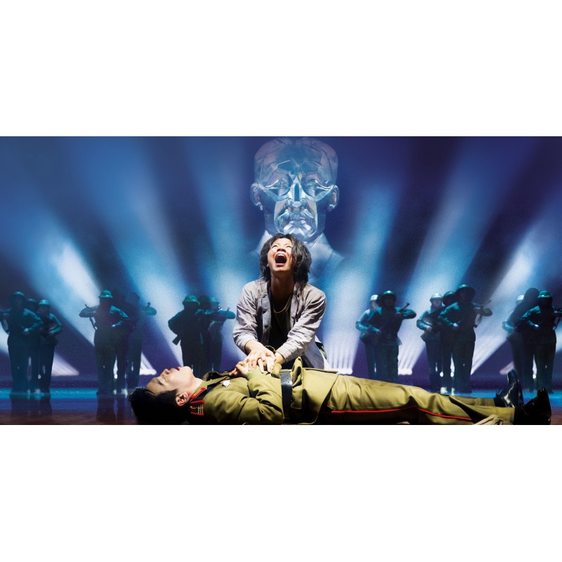 初演は1989年9月20日のロンドン・ウエストエンド。1991年にブロードウェイでも開幕。プッチーニのオペラ「蝶々夫人」をベースに、ベトナム戦争末期のサイゴンのナイトクラブで働く少女キムと、アメリカ大使館軍属運転手クリスとの悲恋が描かれる。ハイライトは、サイゴンが没落し、米兵が撤去するシーンで、実物大のヘリコプターが飛来するシーン。